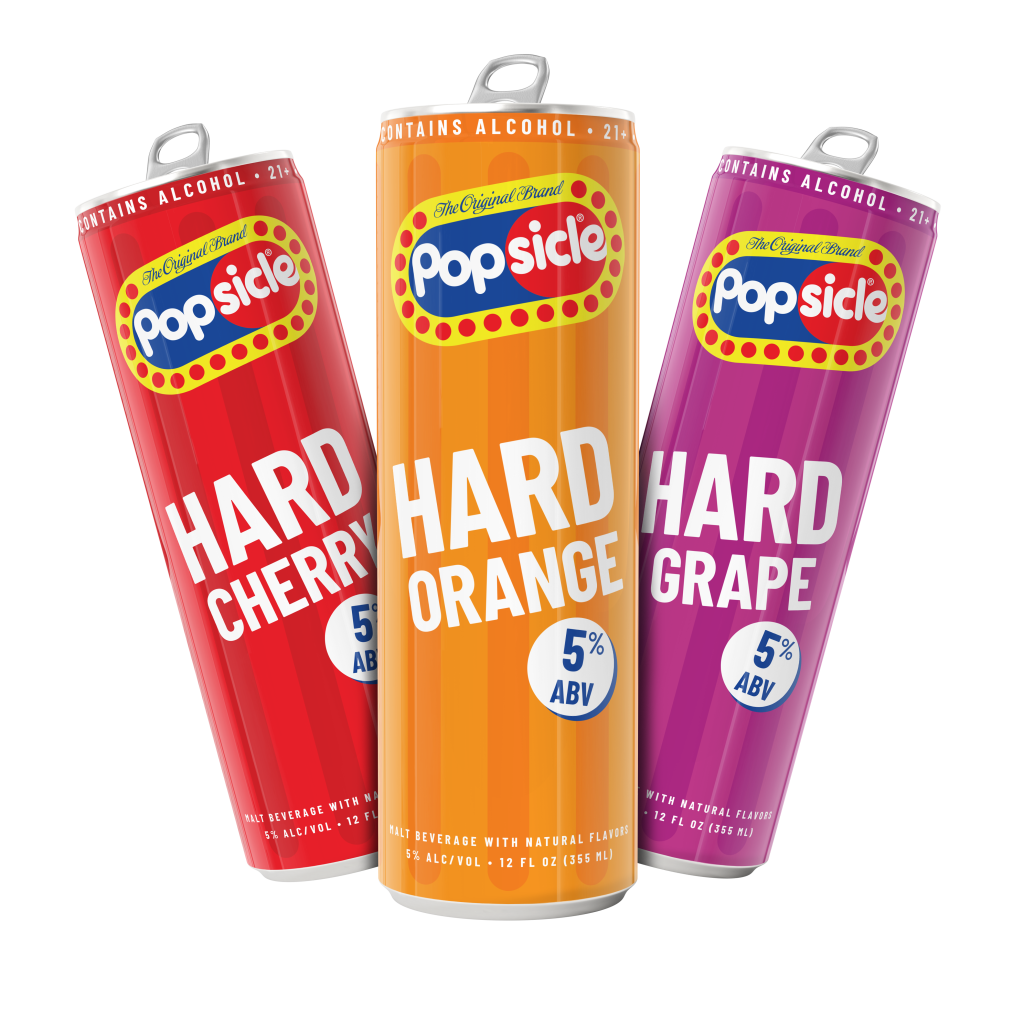 New Popsicle Hard delivers the classic Popsicle flavors we all grew up with plus a 5% ABV kick, coming in Hard Cherry, Hard Orange, and Hard Grape – all non-carbonated.