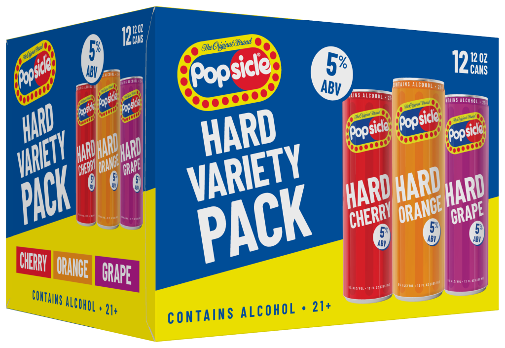 Popsicle Hard is available in three core flavors: Hard Cherry, Hard Orange, and Hard Grape.